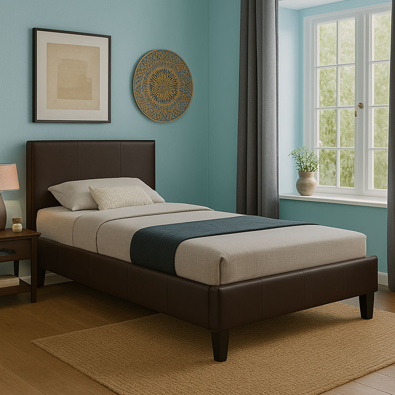 Κρεβάτι Nevil pakoworld μονό 100×200 PU σκούρο καφέ ματ