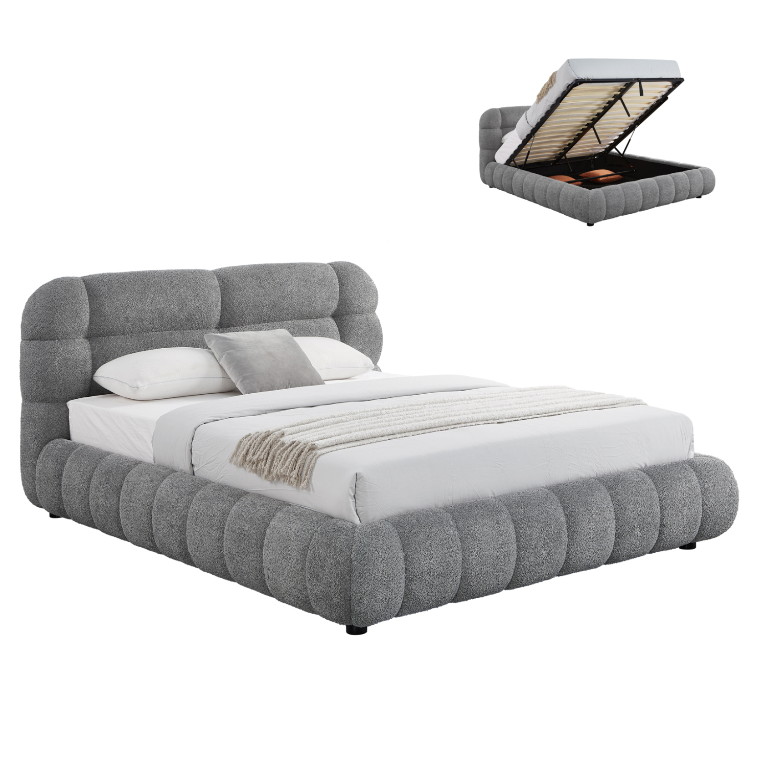 ΚΡΕΒΑΤΙ ΜΕ ΑΠΟΘ.ΧΩΡΟ MOLEN HM730.01 ΓΚΡΙ ΜΠΟΥΚΛΕ ΥΦΑΣΜΑ–ΓΙΑ ΣΤΡΩΜΑ 160×200εκ