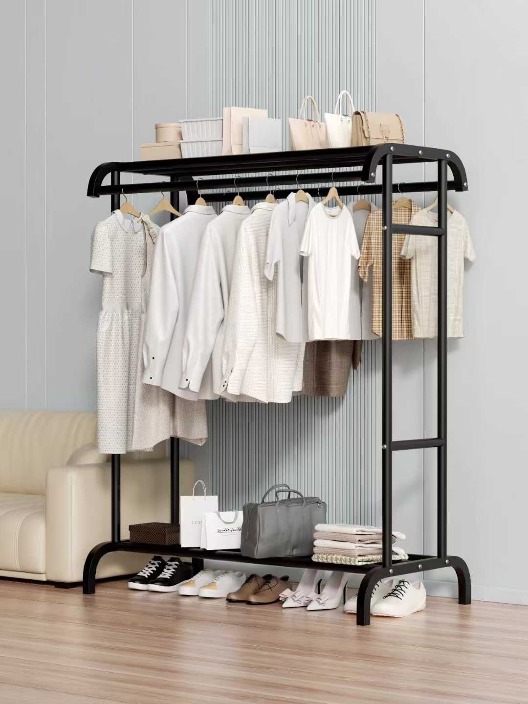 Κρεμάστρα δαπέδου μεταλλική, με ράφι παπουτσιών, ιδανική ως έπιπλο εισόδου ή για την οργάνωση των ρούχων στο δωμάτιό σας .