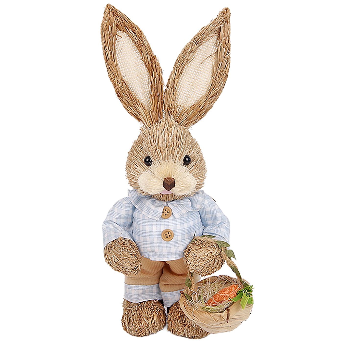 Λαγός Όρθιος Ψάθινος Γαλάζιο Πουκάμισο Κρατάει Καλάθι 33x13x11cm Bunny’s 932183