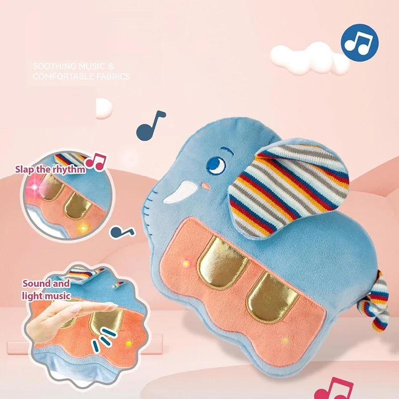 Λούτρινο βρεφικό παιχνίδι πιάνο ελεφαντάκι με ήχους και με απαλή, υποαλλεργική επένδυση, απόλυτα φιλική στο δέρμα.