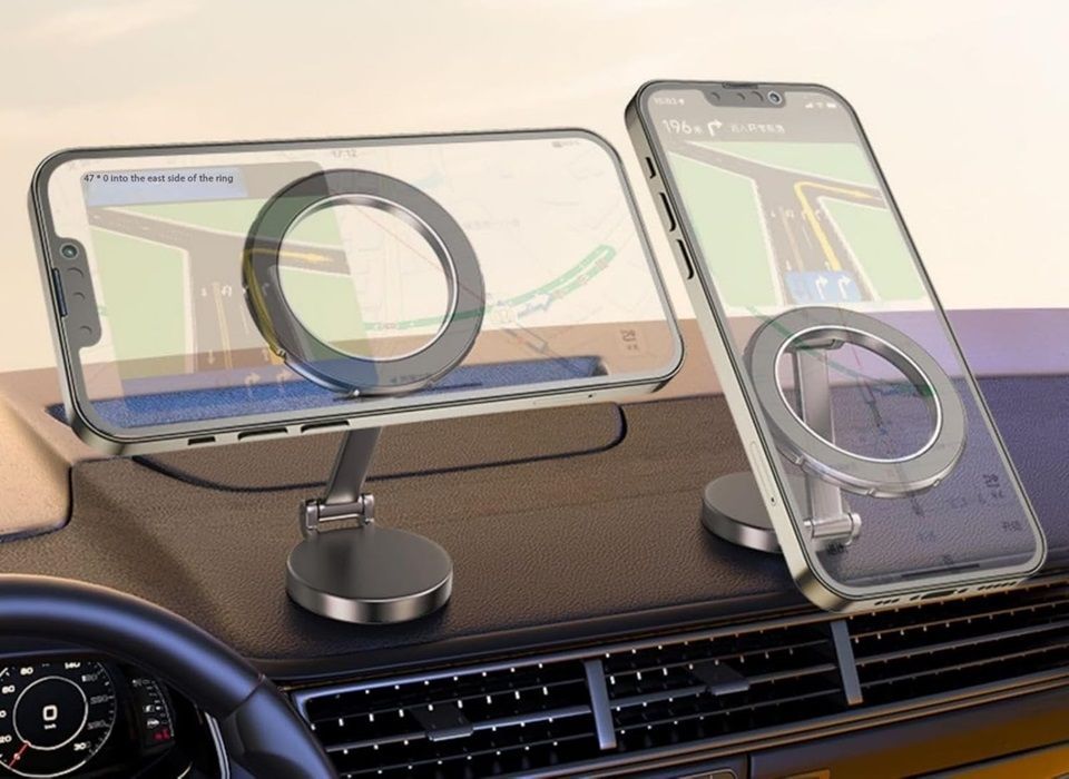 Μαγνητική βάση στήριξης smartphone αυτοκινήτου με εύκολη τοποθέτηση στο ταμπλό με ισχυρό αυτοκόλλητο και πτυσσόμενο βραχίονα με ρυθμιζόμενη κλίση.