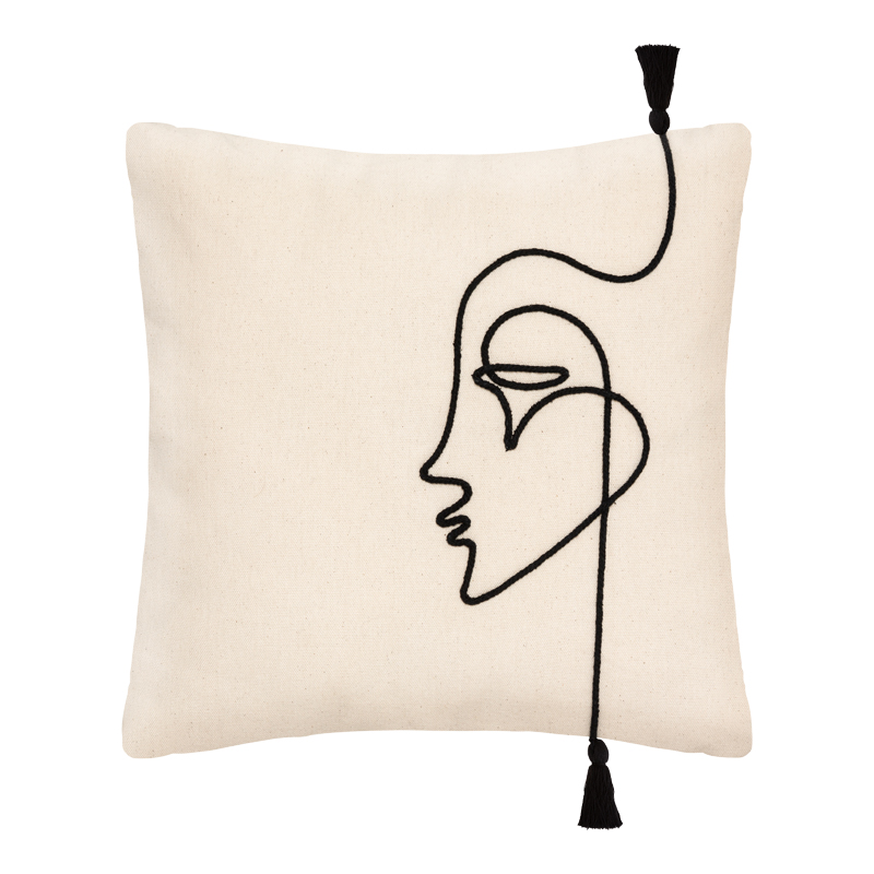 Μαξιλάρι διακοσμητικό Cuten pakoworld με κρόσσια ύφασμα σε ιβουάρ-μαύρη απόχρωση 40×40εκ