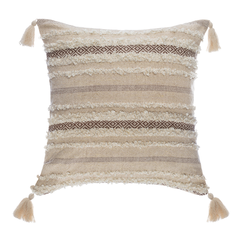 Μαξιλάρι διακοσμητικό Polat pakoworld με κρόσσια ύφασμα σε μπεζ απόχρωση 59×59εκ