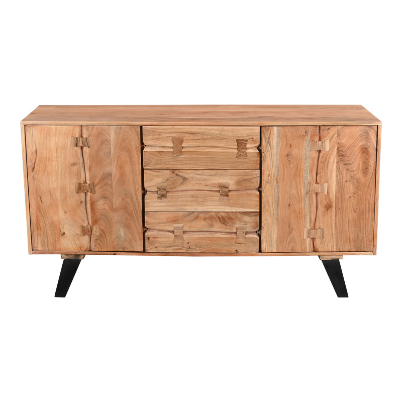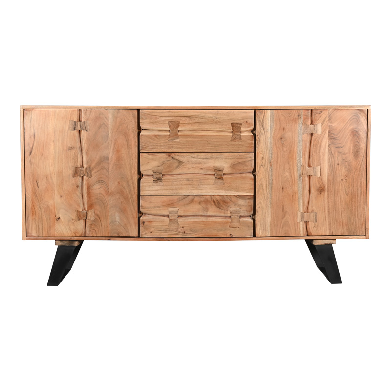 Μπουφές Leontina pakoworld μασίφ ξύλο ακακίας σε φυσική απόχρωση με πόδι μαύρο μέταλλο 150x45x86εκ