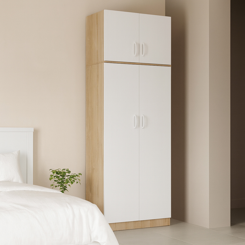 - Περιλαμβάνει δύο πόρτες, εσωτερικά φέρει ράγα για κρεμάστρες ενώ φέρει στο κάτω μέρος ράφι για την οργάνωση των ρούχων και αξεσουάρ.