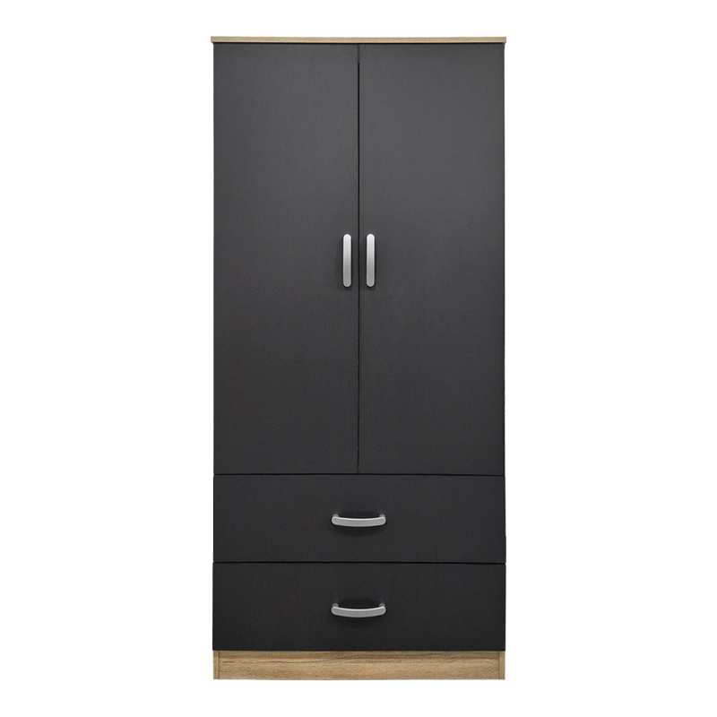 Ντουλάπα δίφυλλη με 2 συρτάρια Alvia pakoworld sonoma-ανθρακί 80×51.5×180εκ