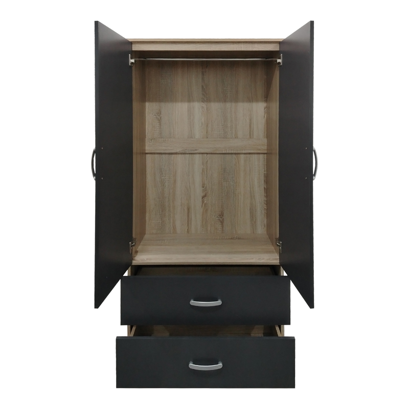- Περιλαμβάνει δύο πόρτες, εσωτερικά φέρει ράγα για κρεμάστρες ενώ κάτω φέρει δύο μεγάλα συρτάρια για την αποθήκευση ρούχων και αξεσουάρ.