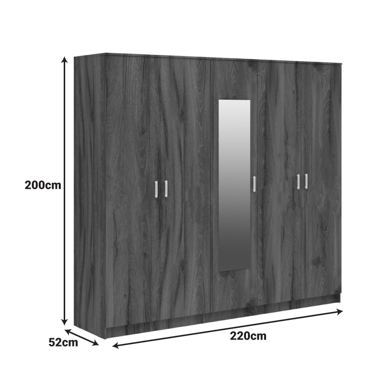 Ντουλάπα πεντάφυλλη με καθρέφτη Luna pakoworld καρυδί-oak 220x52x200εκ