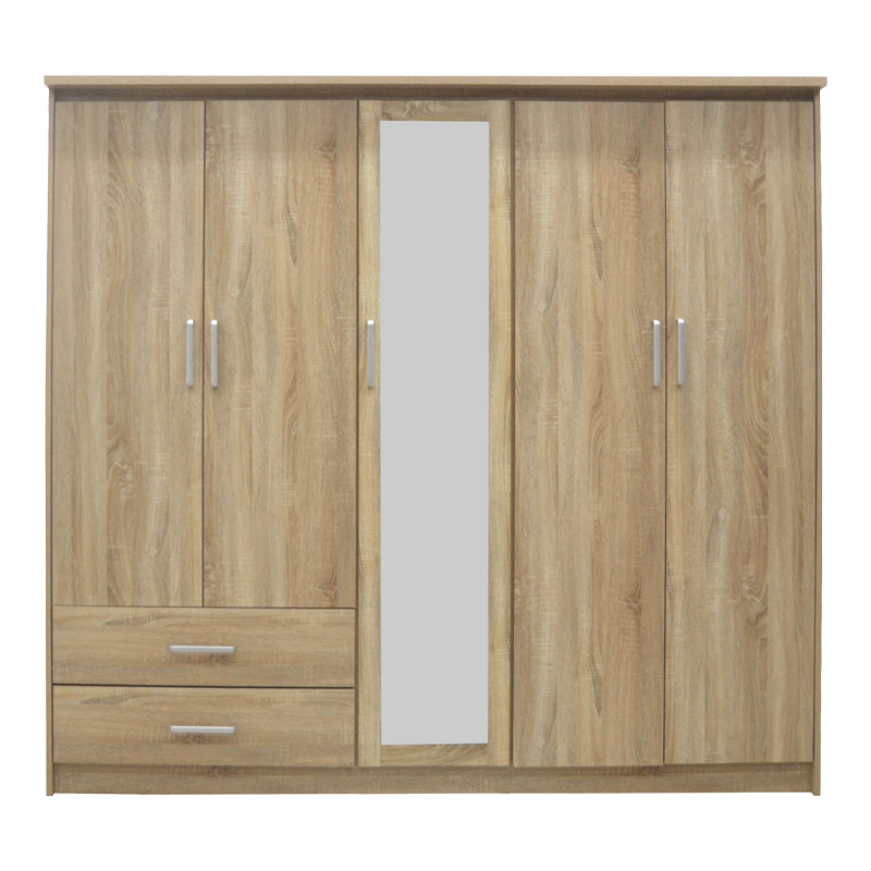 Ντουλάπα ρούχων πεντάφυλλη OLYMPUS pakoworld σε sonoma απόχρωση 198x57x183εκ