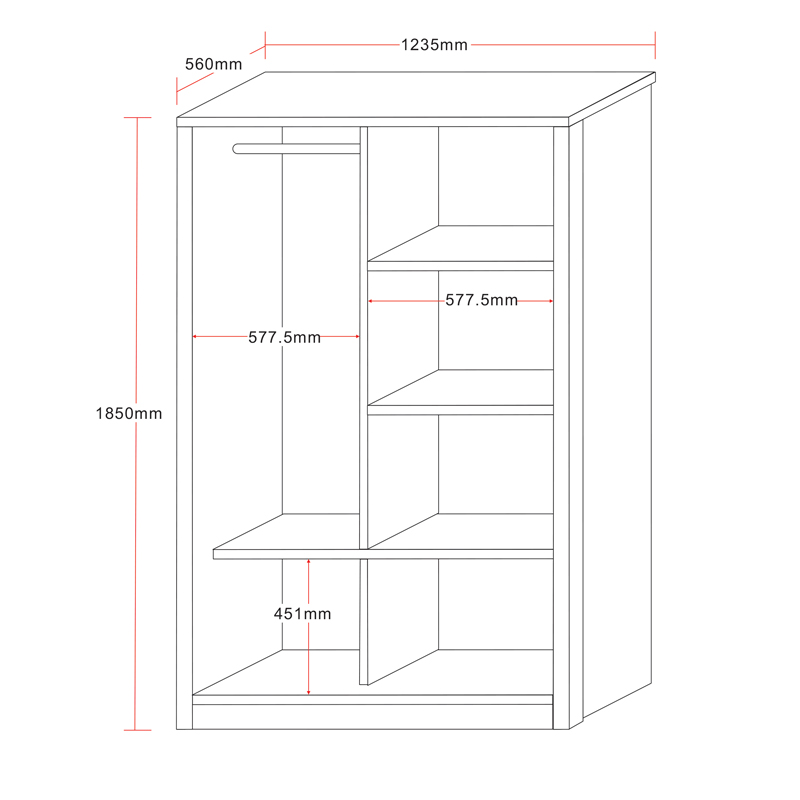 - Στο εσωτερικό περιλαμβάνει βέργες για κρεμάστρες και ένα ράφι.