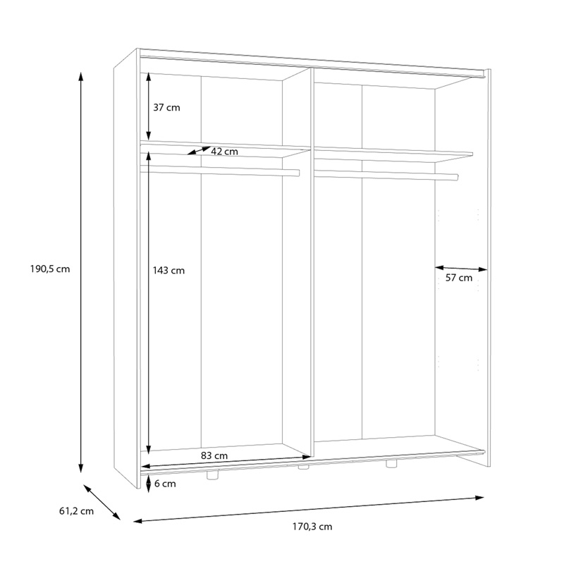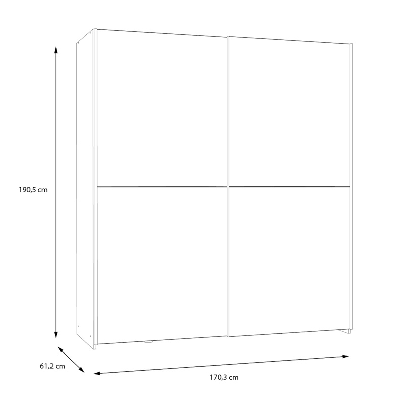 Η δίφυλλη ντουλάπα ρούχων Noez I είναι μια εξαιρετική επιλογή για να οργανώσετε τα ρούχα σας με στυλ και λειτουργικότητα. Με συρόμενες πόρτες για μεγαλύτερη εξοικονόμηση χώρου και ποικίλους τρόπους αποθήκευσης προσδίδει μια αίσθηση καθαρότητας, ηρεμίας και οργάνωσης στον χώρο σας. Ανανεώστε τον χώρο σας και απολαύστε την ευκολία και την λειτουργικότητα που προσφέρει και αποκτήστε μια καλά διαμορφωμένη και ευχάριστη ατμόσφαιρα στον χώρο σας.