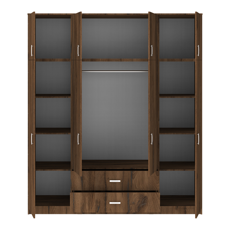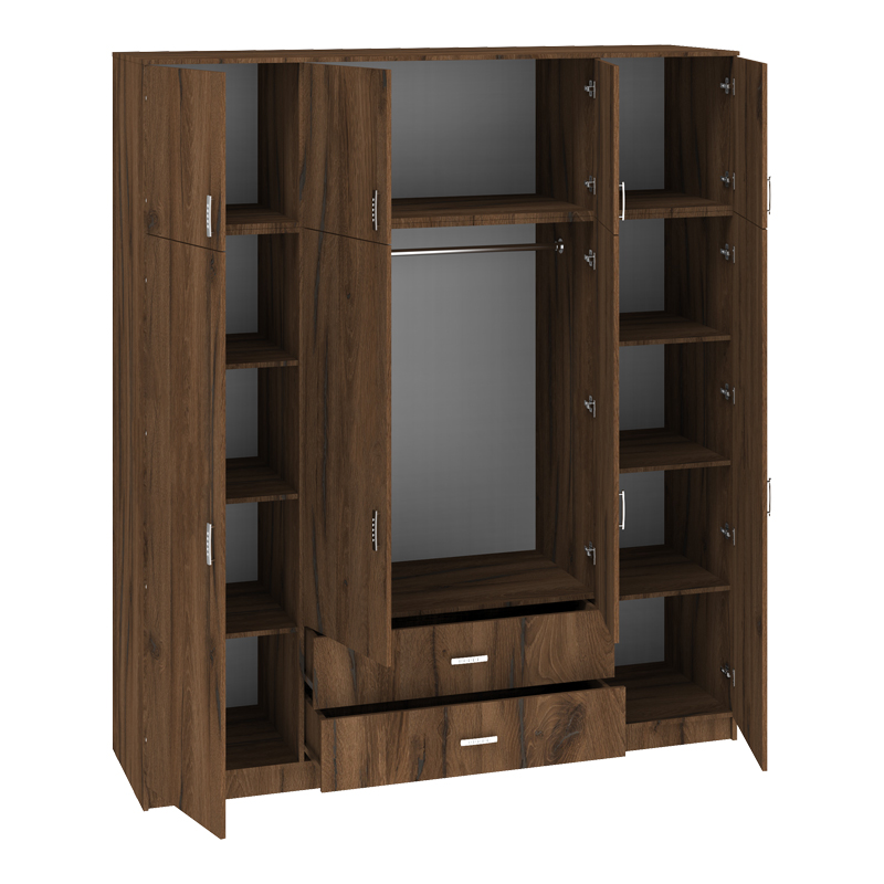 Ντουλάπα τετράφυλλη με συρτάρια Royal pakoworld καρυδι-oak 200x58x230εκ