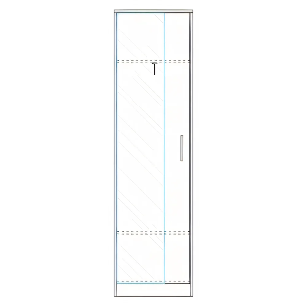 - Εσωτερικά διαθέτει δύο ράφια πάνω και κάτω και στην μέση χώρο με μεταλλική ράγα για το κρέμασμα ρούχων