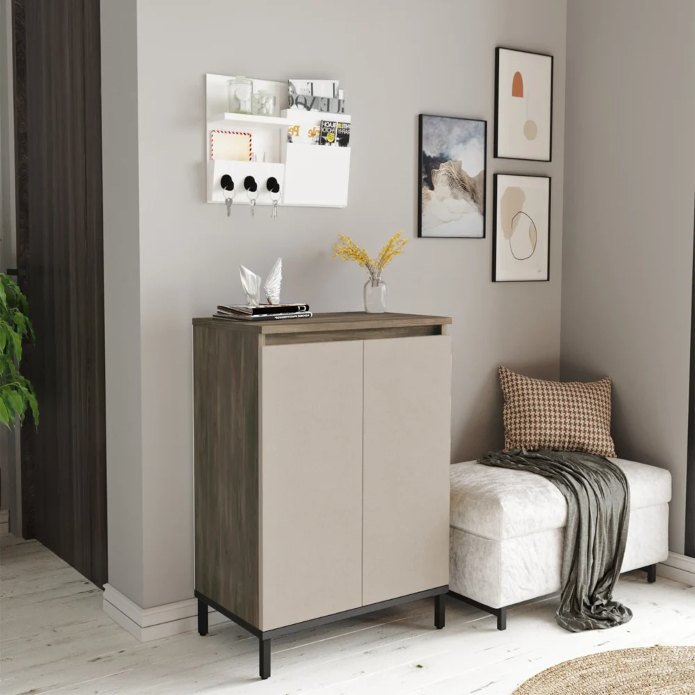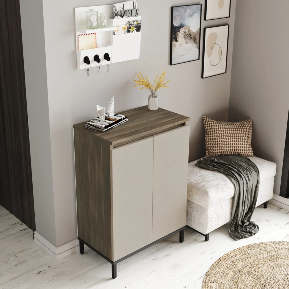 Ντουλάπι Πολλαπλών Χρήσεων ArteLibre CHELSEA Καφέ/Ανθρακί Μοριοσανίδα/Μέταλλο 60×35.5×85.6cm