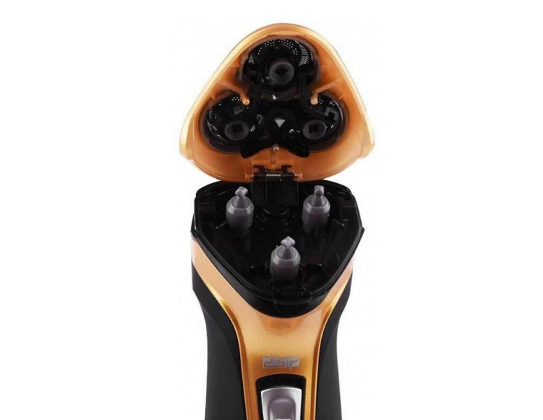 Επαναφορτιζόμενη ξυριστική μηχανή της DSP με εργονομικό σχεδιασμό και 3 κυκλικές λεπίδες που προσαρμόζονται στις καμπύλες του προσώπου, για βαθύ ξύρισμα και μέγιστο αποτέλεσμα χωρίς ερεθισμούς.