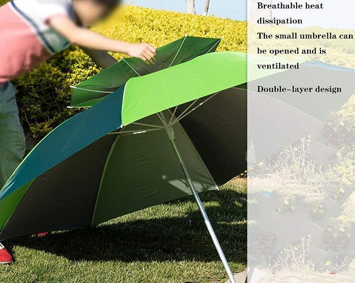Ομπρέλα θαλάσσης & camping διπλή με αντιανεμικό σύστημα κατασκευής που επιτρέπει στον αέρα να τη διαπερνά και βοηθά στην αποσυμφόρηση της θερμότητας. Η μικρή ομπρέλα κορυφής που διαθέτει μπορεί να ανοιχτεί προς τα επάνω για καλύτερο αποτέλεσμα. ‘Υφασμα 100% αδιάβροχο, μέγιστης ανθεκτικότητας με πλήρη προστασία από την ηλιακή ακτινοβολία. Δίσπαστη, αιχμηρό τελείωμα για εύκολη τοποθέτηση στην άμμο και ρυθμιζόμενο ύψος με σταθεροποιητή-κλιπ. Διάμετρος ανοιχτή: 2m. Ιδανική για την παραλία, το camping ή τον κήπο σας.