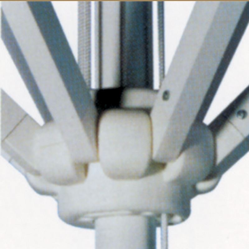 Ομπρέλα Φ2,30 αλουμινίου σε εκρού χρώμα. Με 8 ακτίνες 10Χ18Χ0,5mm. Διαθέτει διπλό ιστό Φ38mm, αεραγωγό και αδιάβροχο πανί πολυεστερικό 230g.