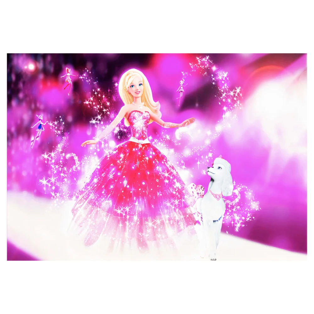 Αυτό το εντυπωσιακό χαλί για κορίτσια έχει κυρίαρχo χρώμα το ΡΟΖ και δεν διαθέτει μπορντούρα. Όλο το χαλί είναι μια πανέμορφη εικόνα της δημοφιλούς ξανθιάς κούκλας με τον άσπρο σκύλο της, να λάμπει στο ροζ λαμπερό φόρεμά της «λουσμένη» στην «αστερόσκονη». Άλλωστε, τι άλλο θέλει ένα παιδί για να βάλει την φαντασία του να δουλέψει;