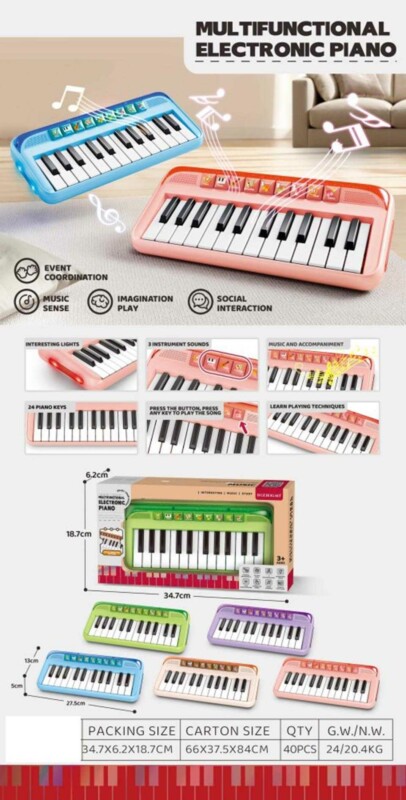 Παιδικό εκπαιδευτικό πιάνο, σε πανέμορφο σχεδιασμό, με πλήκτρα διαφόρων ήχων και πολλαπλές λειτουργίες, για τους μικρούς λάτρεις της μουσικής.