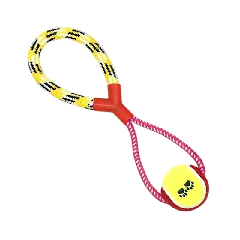 Παιχνίδι σκύλου σχοινί με μπάλα, κατασκευασμένο από ιδιαίτερα ανθεκτικό πολυεστέρα, μη τοξικό, ιδανικό για πολλαπλά είδη παιχνιδιού και άσκησης. Θα γίνει το αγαπημένο καθημερινό παιχνίδι που το σκυλί σας θα λατρέψει.