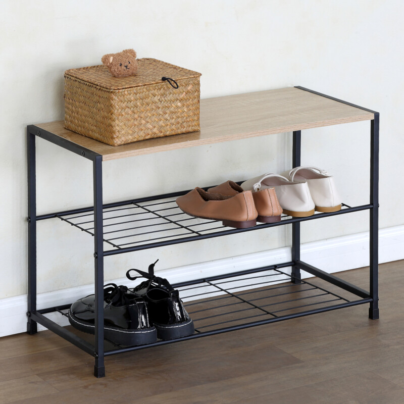 Παπουτσοθήκη ArteLibre JESMOND Δρυς/Μαύρο Μοριοσανίδα/Μέταλλο 63x30x43cm