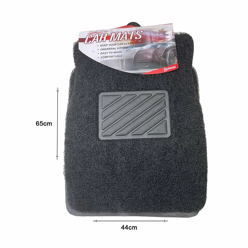 Πατάκια αυτοκινήτου Universal, σετ 4 τεμαχίων: οδηγού, συνοδηγού και 2 x πίσω. Κατασκευασμένα από συνθετικό υλικό υψηλής ανθεκτικότητας, με ενίσχυση καουτσούκ και αντιολισθητική επίστρωση στη βάση. Κατάλληλα για όλους τους τύπους αυτοκινήτων. Διαστάσεις: 65x44cm.