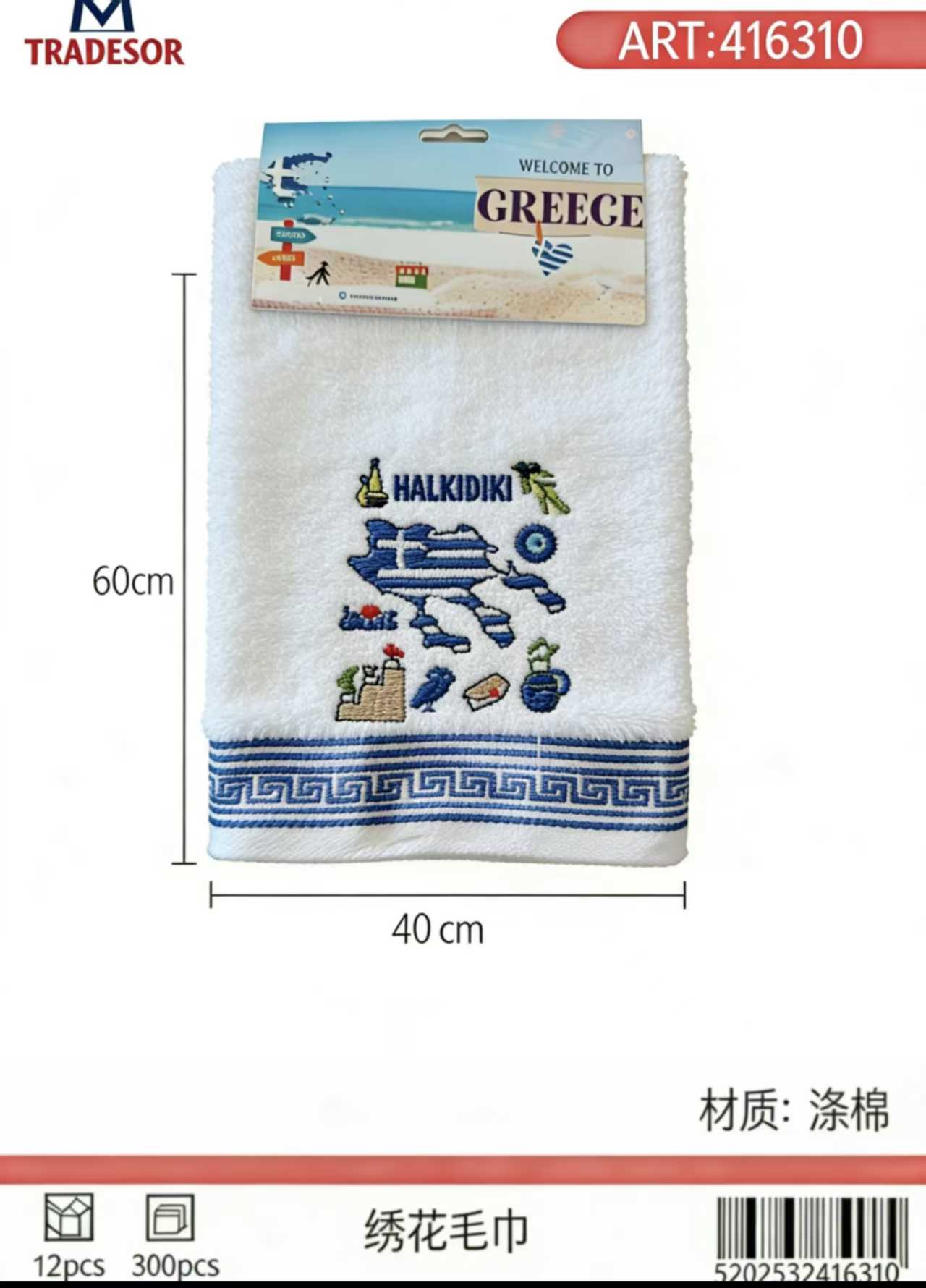 Πετσέτα ποτηρόπανο Souvenir με κέντημα – Σετ 12pcs – Chalkidiki – 416310