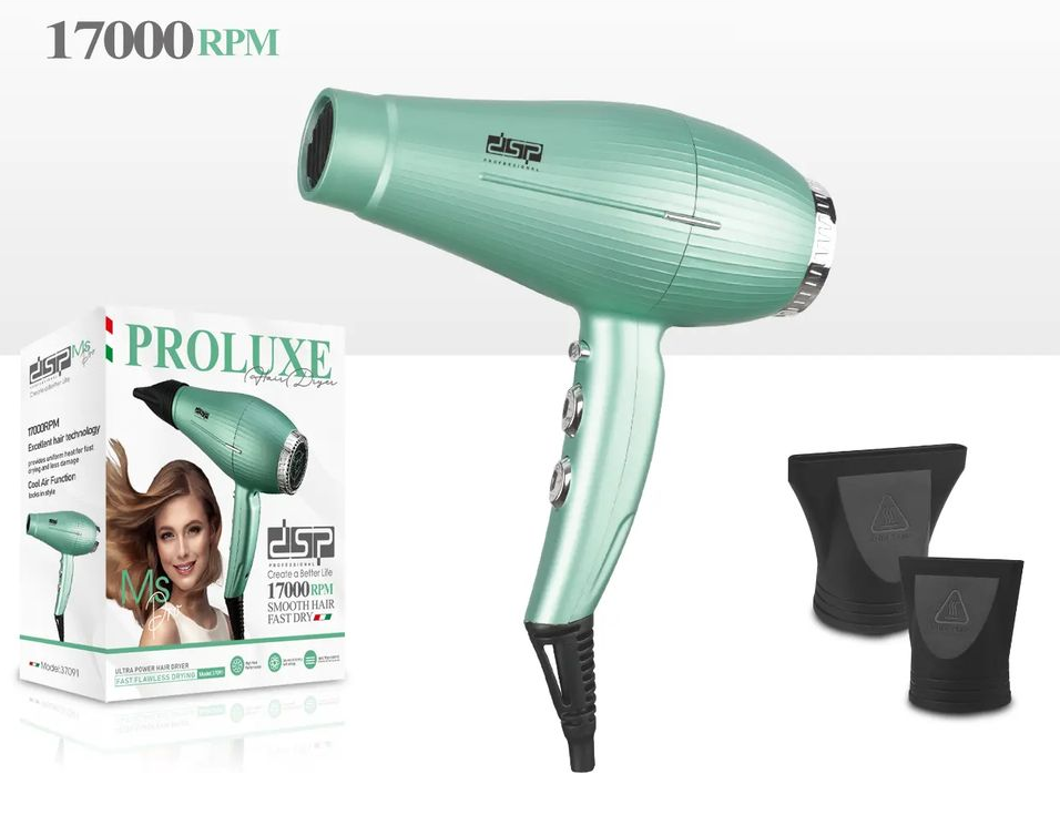 Πιστολάκι μαλλιών DSP, υψηλής ισχύος, με δυνατή ροή αέρα για γρήγορο στέγνωμα και φορμάρισμα των μαλλιών.