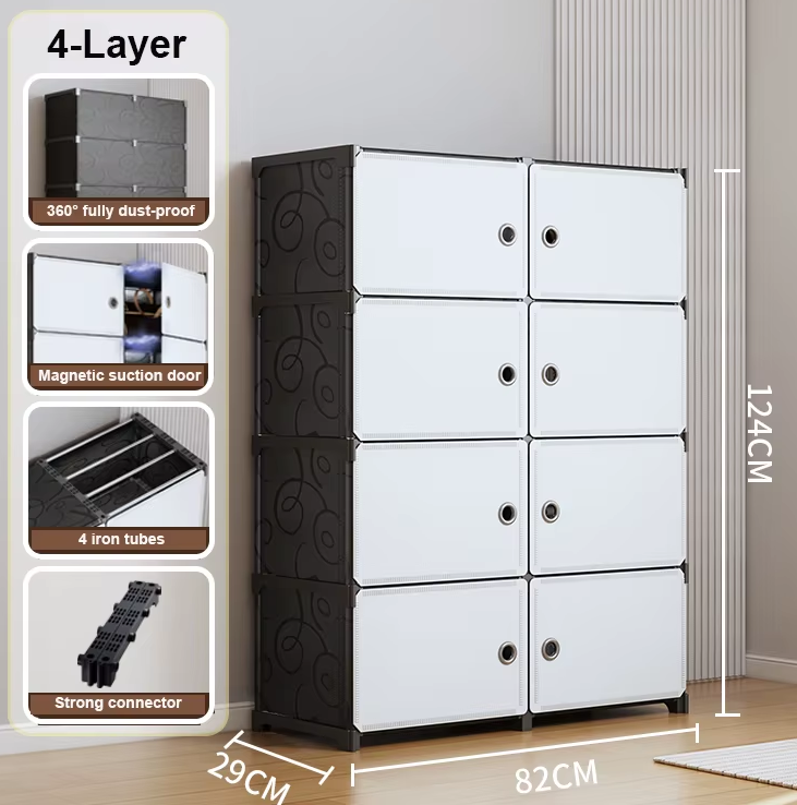 Πλαστικό ντουλάπι αποθήκευσης δαπέδου 4 επιπέδων, με στιβαρό σκελετό και θήκες με πορτάκι από λεπτό, εύκαμπτο πλαστικό υλικό μεγάλης ανθεκτικότητας,