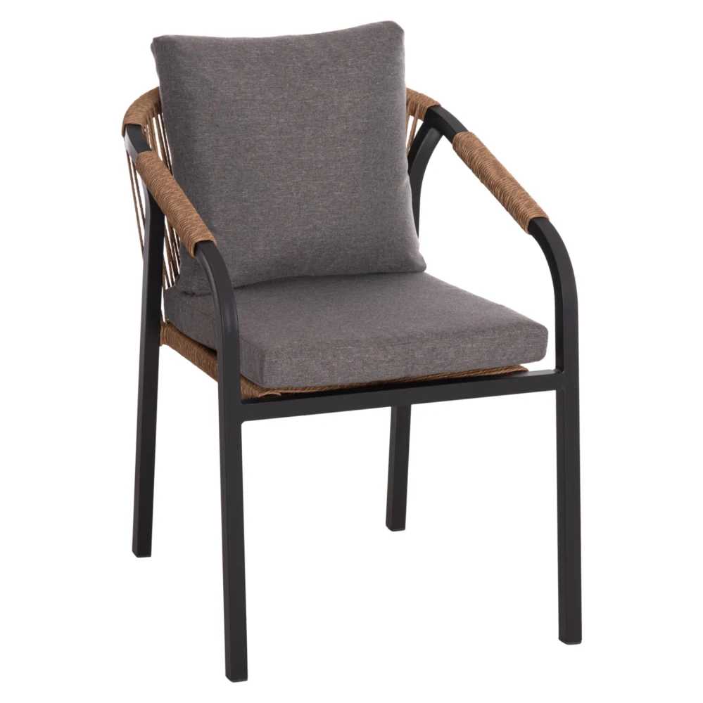 Η πολυθρόνα αλουμινίου MAERLY σε ΑΝΘΡΑΚΙ χρώμα είναι τόσο για επαγγελματική χρήση όσο και για το σπίτι. Ουσιαστικά δεν έχει ξεχωριστά μπράτσα αλλά η πλάτη είναι ενιαία με τα μπράτσα αγκαλιάζοντας το σώμα. Πρόκειται για μια πανέμορφη πολυθρόνα με χαμηλή πλάτη και κάθισμα από συνθετικό σχοινί (P.E. Rattan twisted) άριστης ποιότητας. Το ιδιαίτερο χαρακτηριστικό αυτής της πολυθρόνας είναι ότι διαθέτει αναπαυτικά μαξιλάρια τόσο στο κάθισμα, όσο και στην πλάτη, επίσης σε ΑΝΘΡΑΚΙ χρώμα.
