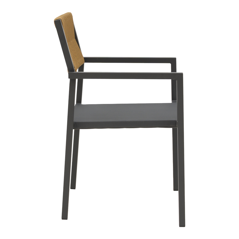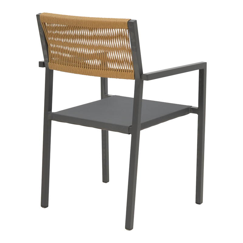 Πολυθρόνα αλουμινίου Savor pakoworld στοιβαζόμενη ανθρακί σκελετός-textilene φυσικό rattan 55x58x63εκ