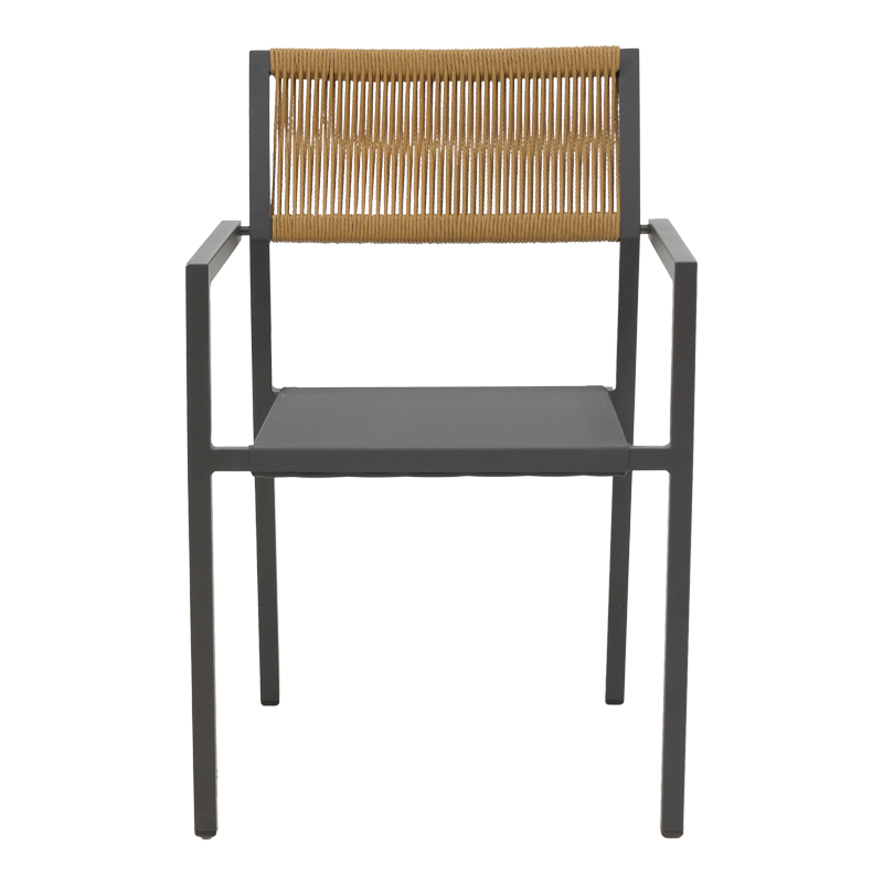 Πολυθρόνα αλουμινίου Savor pakoworld στοιβαζόμενη ανθρακί σκελετός-textilene φυσικό rattan 55x58x83εκ