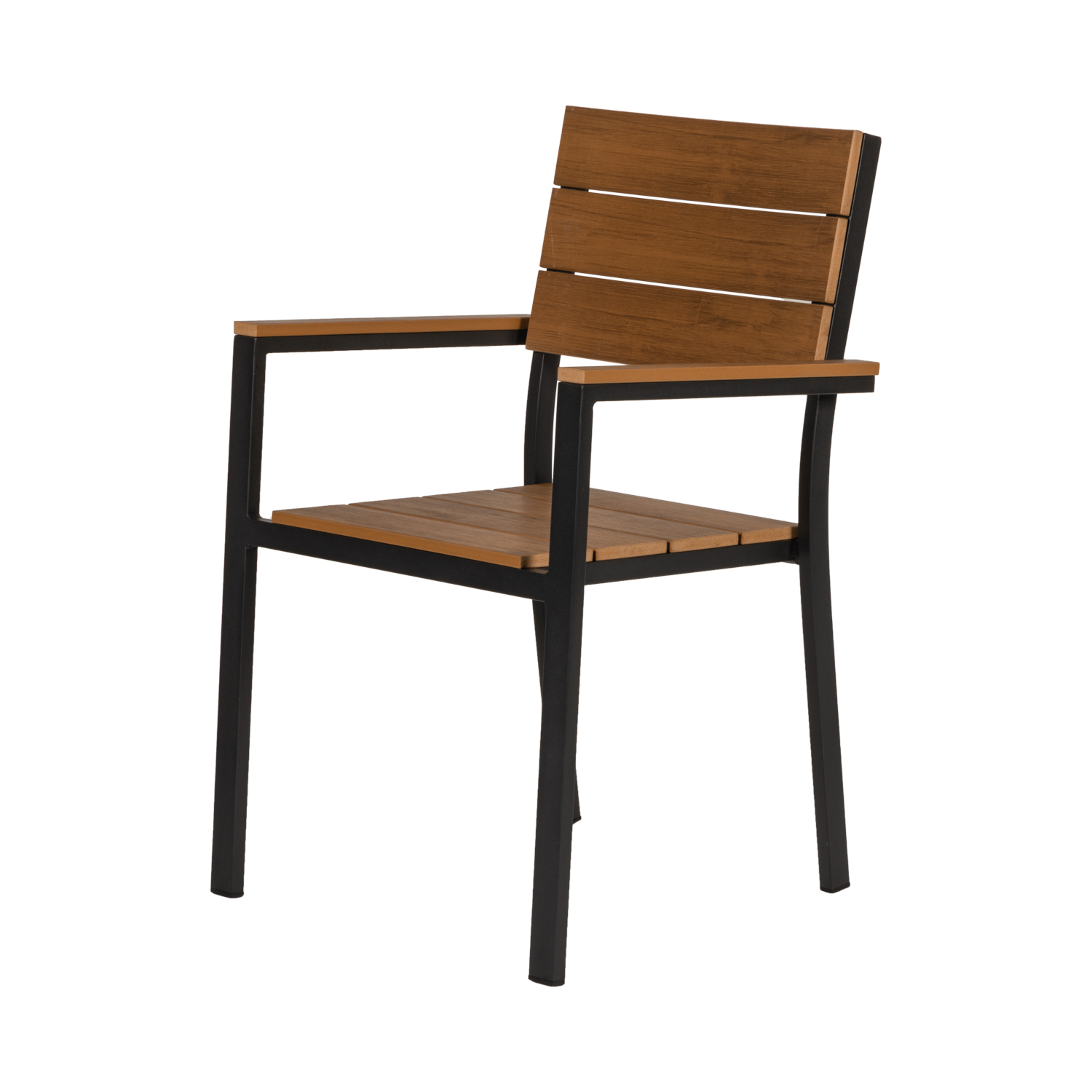 • Κάθισμα/Πλάτη: ξύλο polywood 95x14mm, χρώμα καρυδί