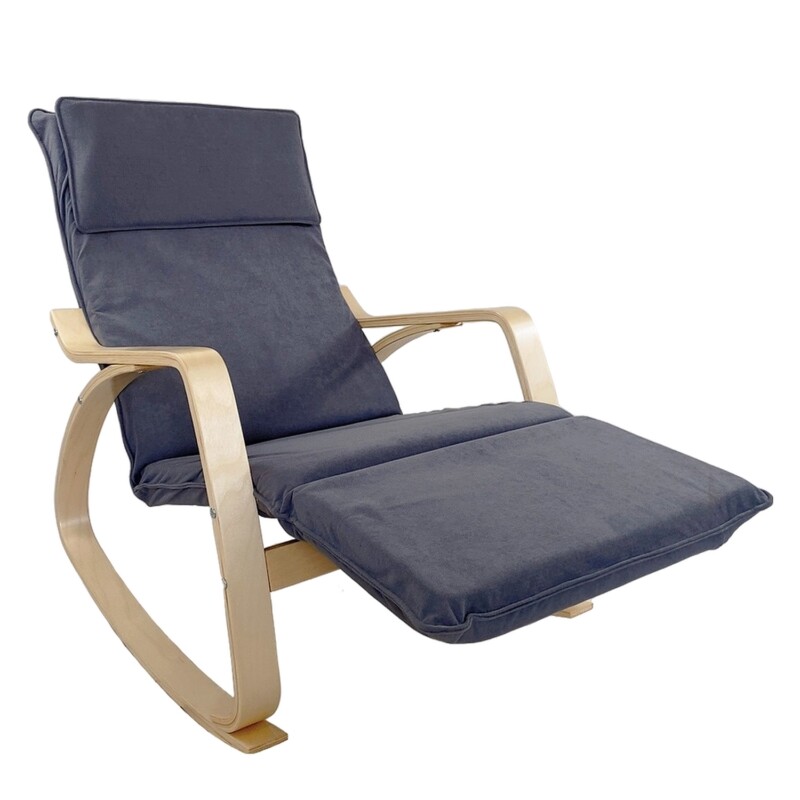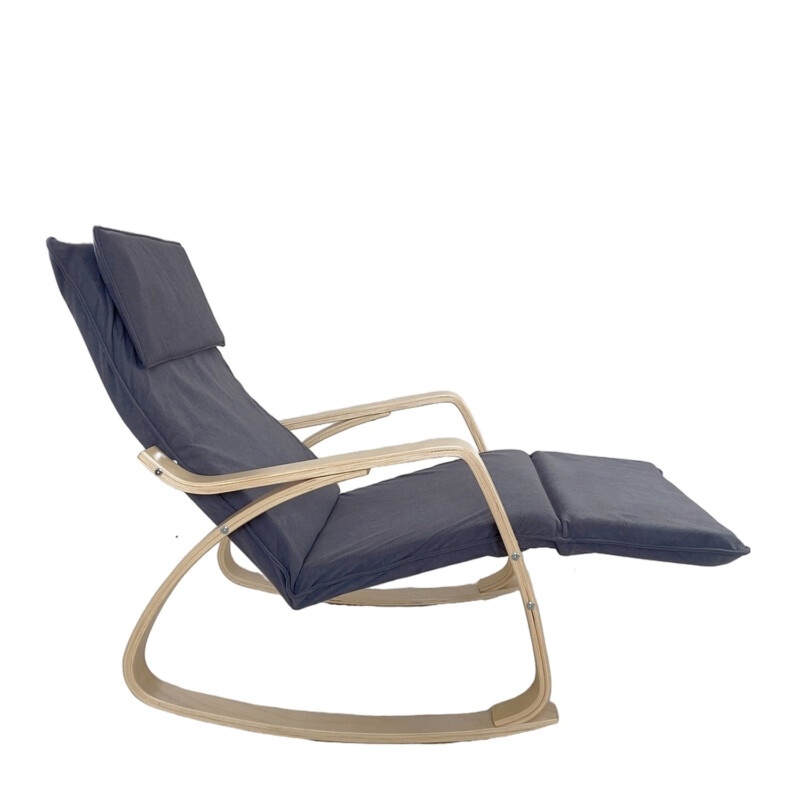Πολυθρόνα Κουνιστή ArteLibre LUNDRA Γκρι/Φυσικό Ύφασμα/Ξύλο 67x127x91cm