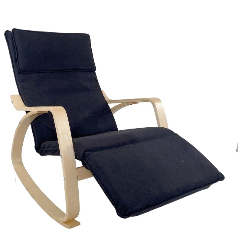 Πολυθρόνα Κουνιστή ArteLibre LUNDRA Μαύρο/Φυσικό Ύφασμα/Ξύλο 67x127x91cm