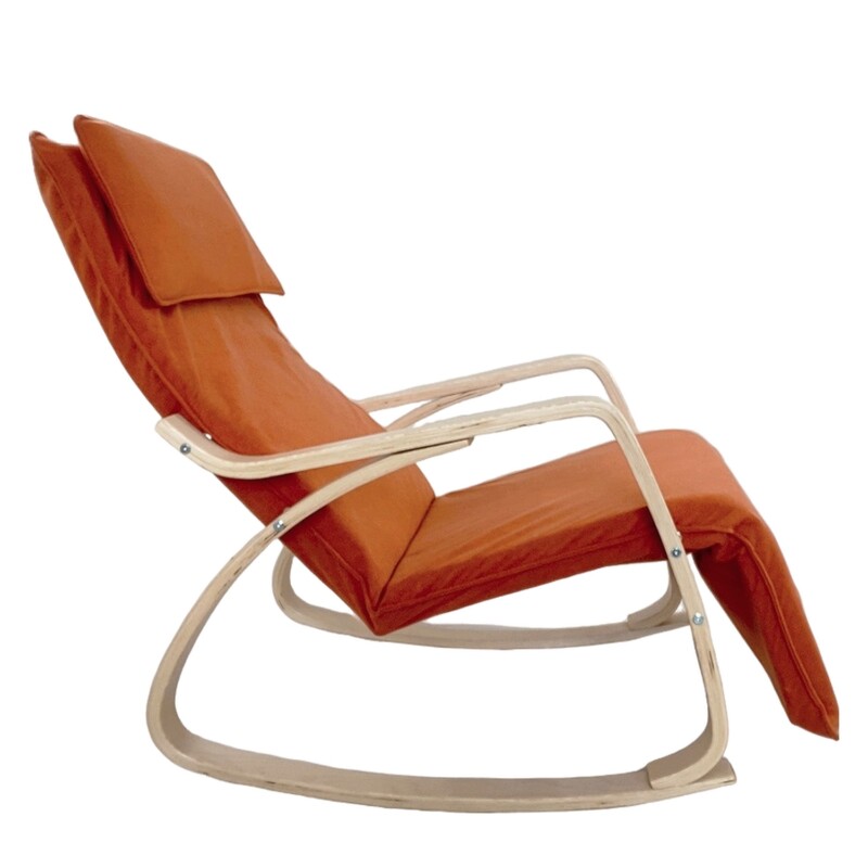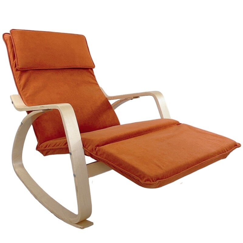 Πολυθρόνα Κουνιστή ArteLibre LUNDRA Πορτοκαλί/Φυσικό Ύφασμα/Ξύλο 67x127x91cm