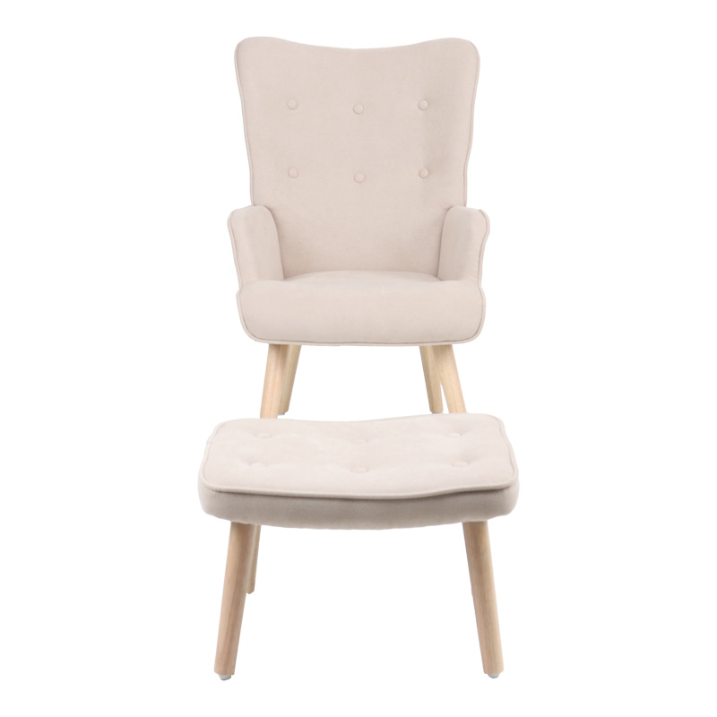Πολυθρόνα με υποπόδιο Melisia pakoworld μπεζ ύφασμα και ξύλινο πόδι σε φυσική απόχρωση 59x67x94εκ