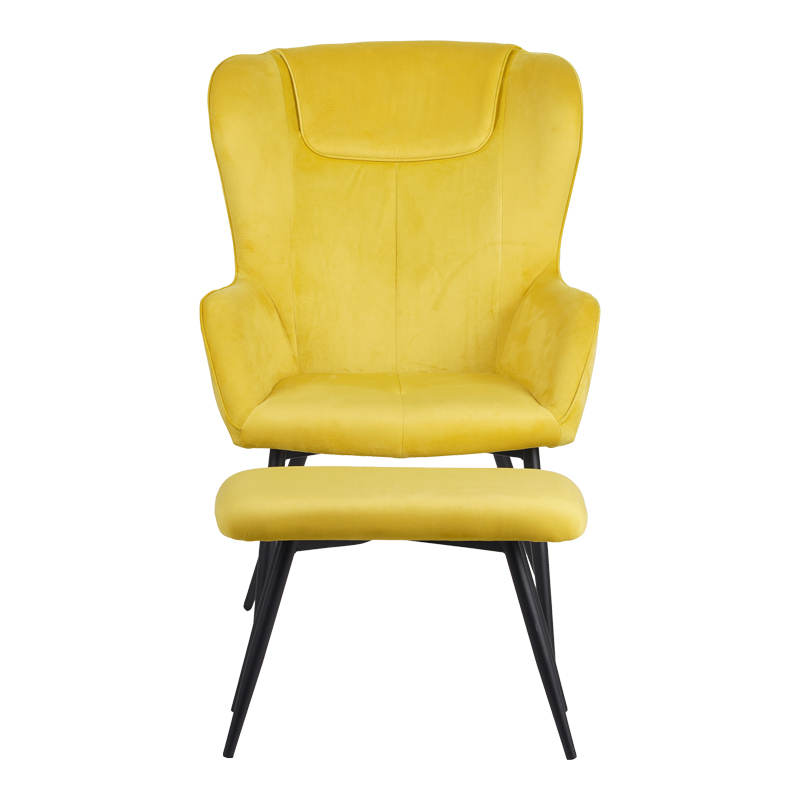 Πολυθρόνα με υποπόδιο Rueda pakoworld βελούδο σε κίτρινη απόχρωση με μαύρα μεταλλικά πόδια 71.5×66.5×99εκ