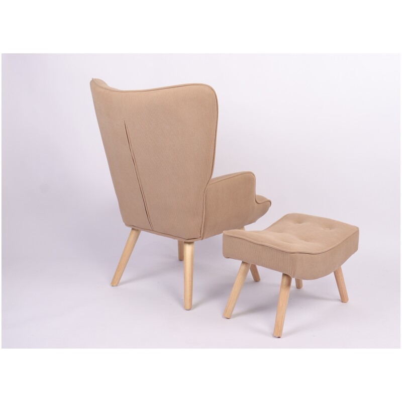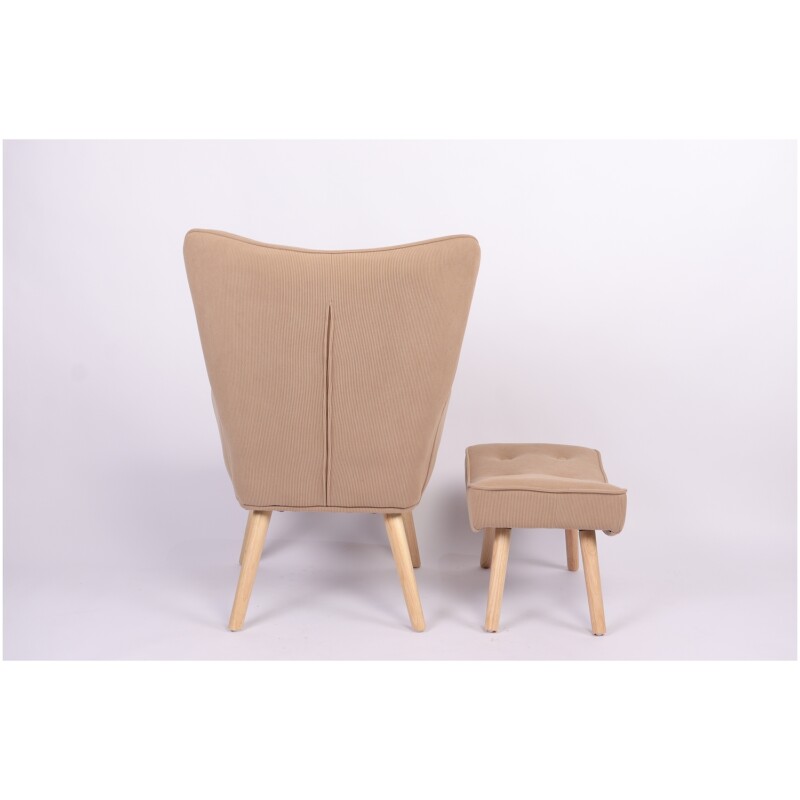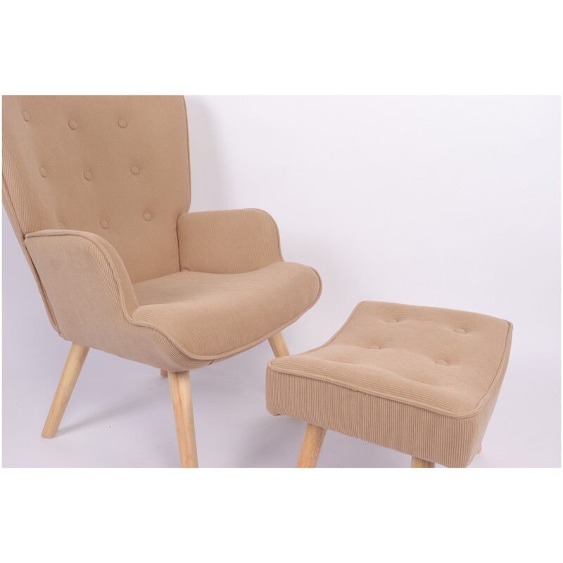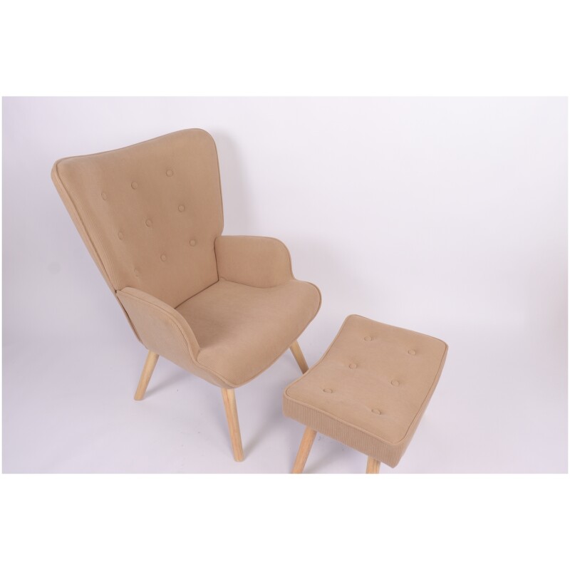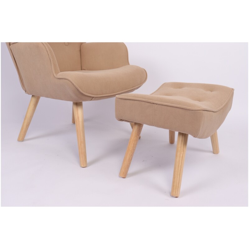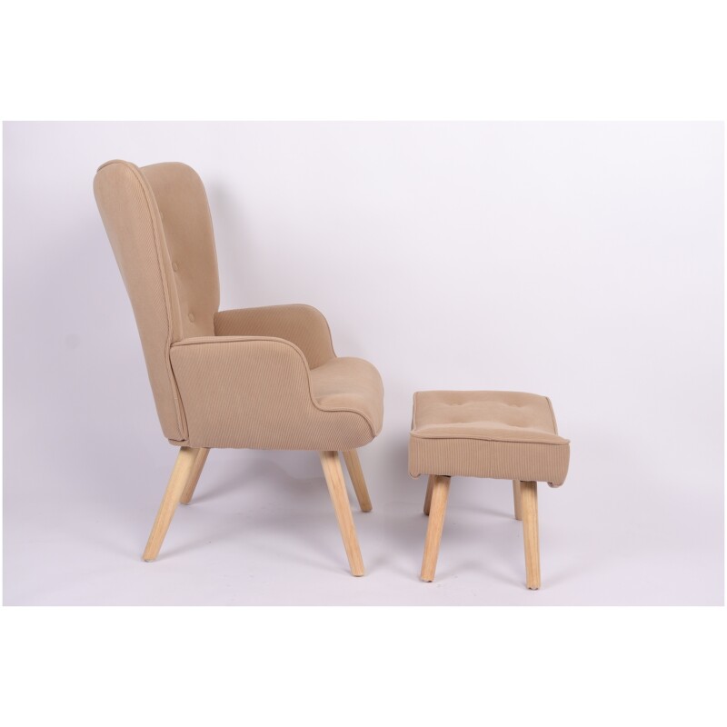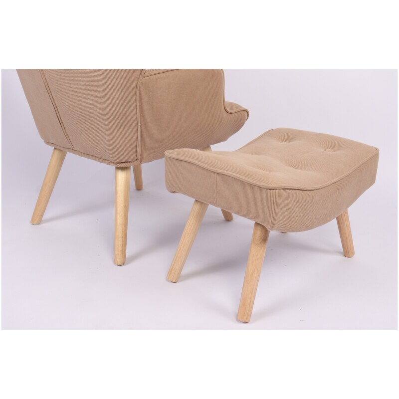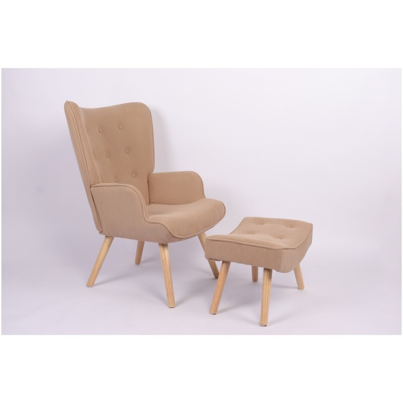 Πολυθρόνα Μπερζέρα Με Υποπόδιο ArteLibre ANIDORI Ανοιχτό Καφέ Ύφασμα/Ξύλο 73x69x96cm