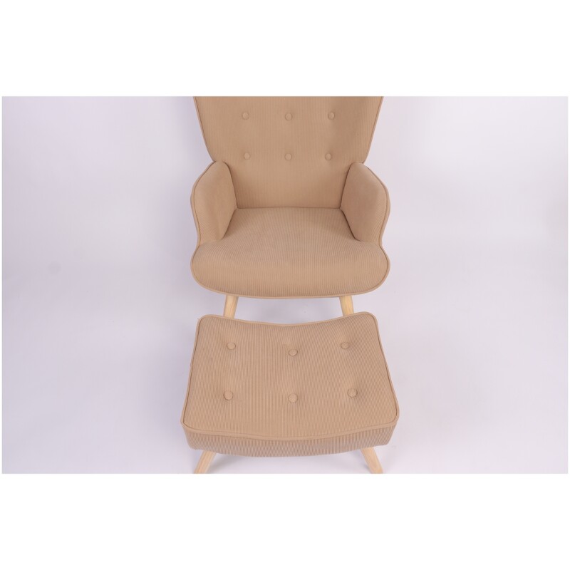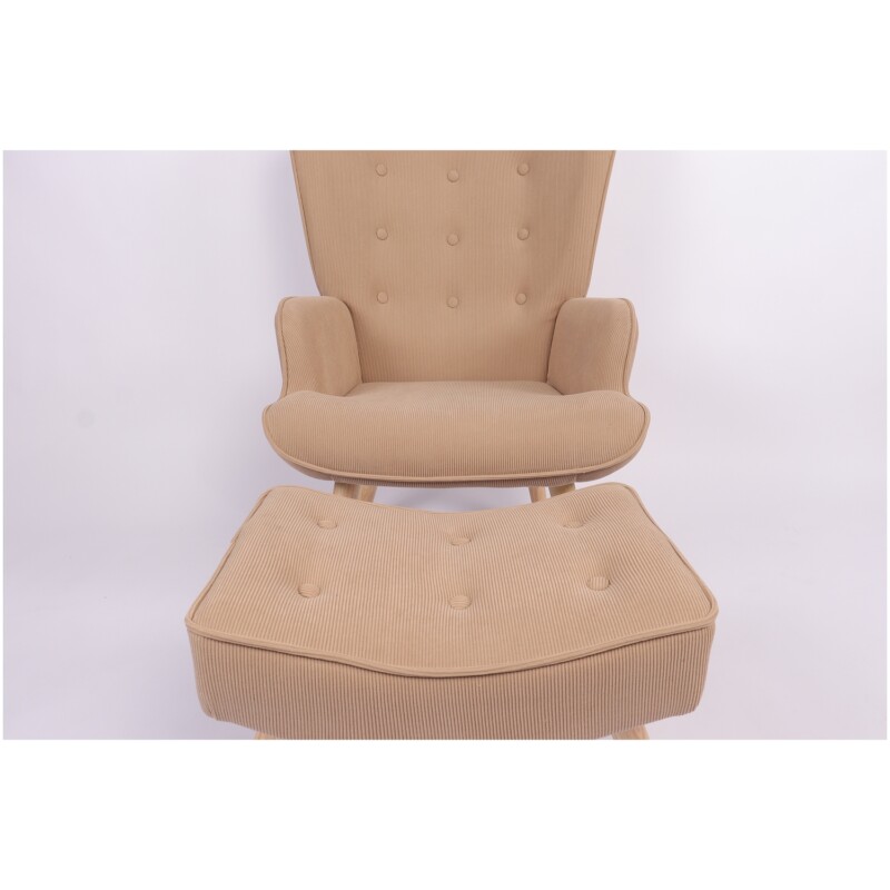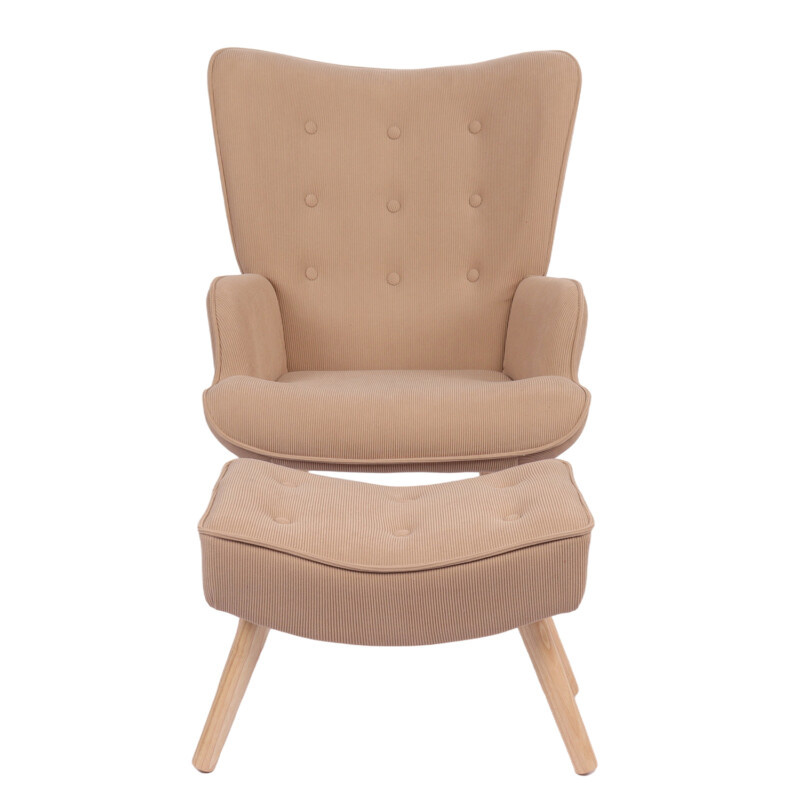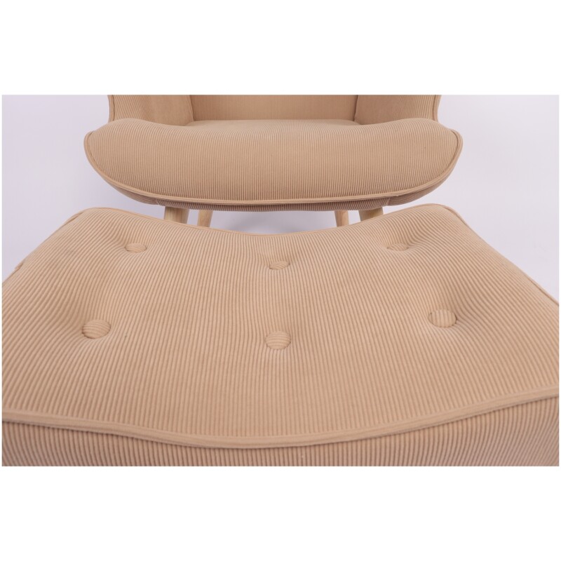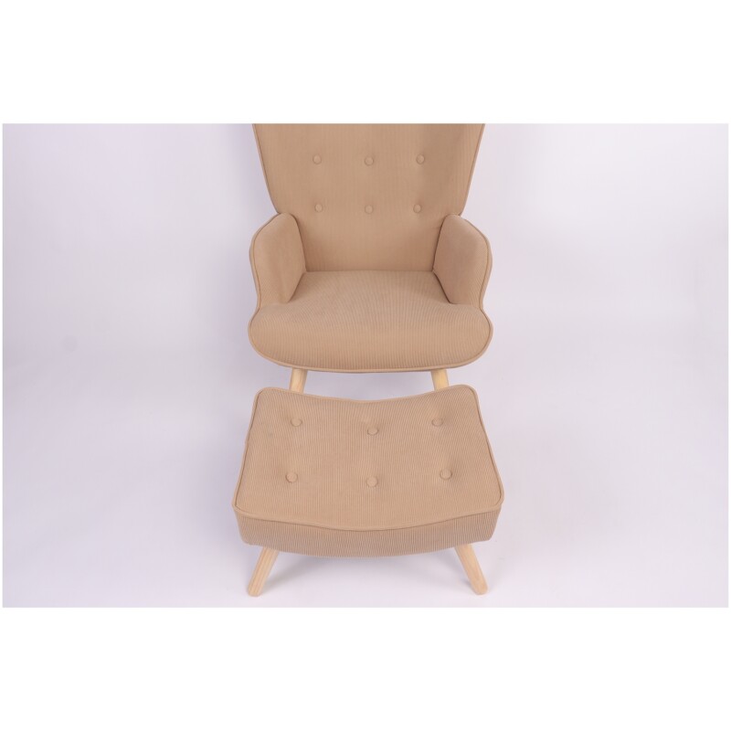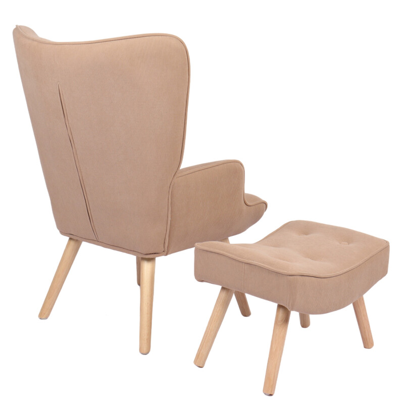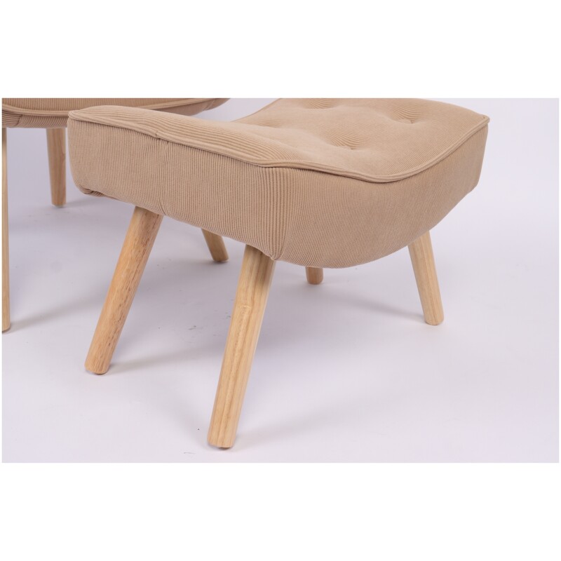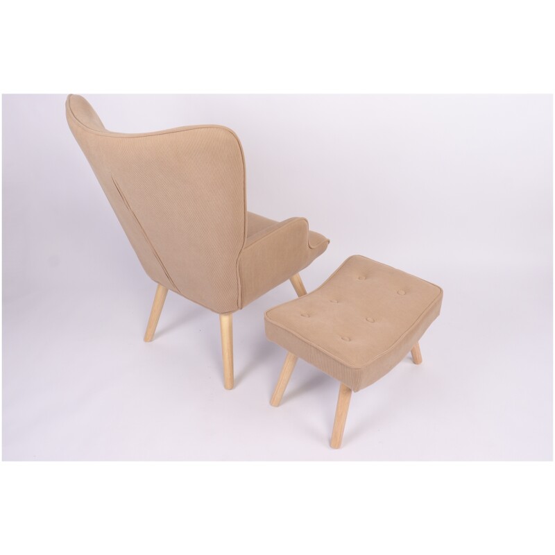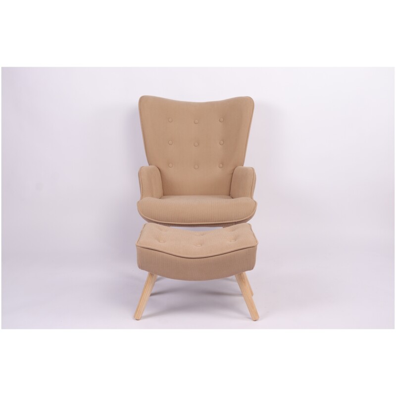 Πολυθρόνα Μπερζέρα Με Υποπόδιο ArteLibre ANIDORI Ανοιχτό Καφέ Ύφασμα/Ξύλο 73x69x96cm