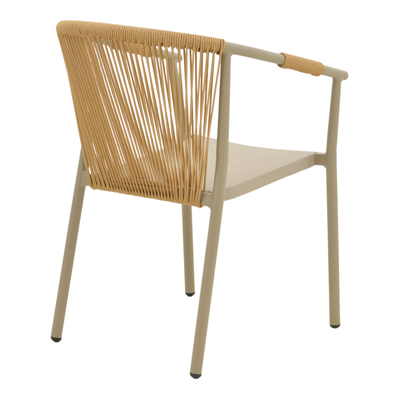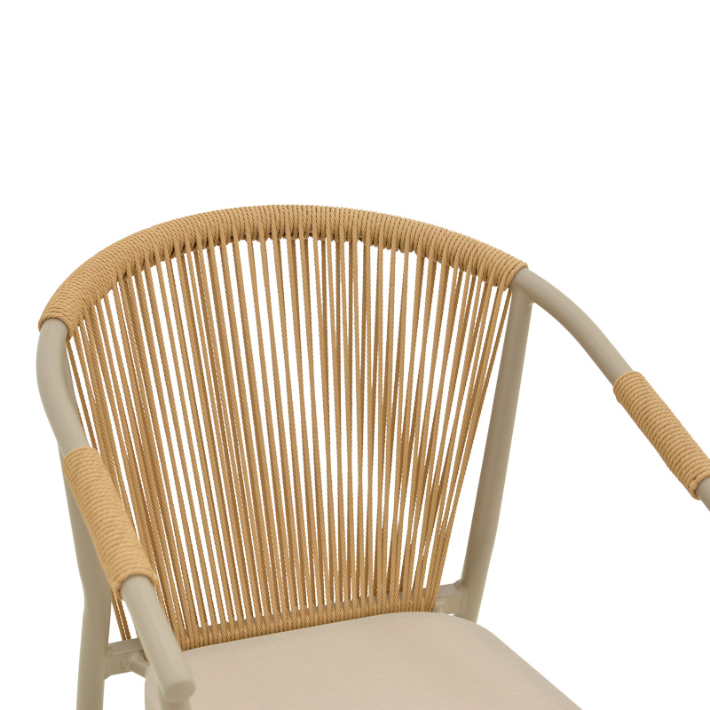 - Πλάτη καρέκλας από εξαιρετικής ποιότητας ρατάν. Η κύρια ιδιότητα του ράταν είναι η ευελιξία του, καθώς μπορεί να πλεκτεί και να διαμορφωθεί εύκολα. Επίσης, είναι ανθεκτικό και αντέχει στις καιρικές συνθήκες, καθιστώντας το ιδανικό για επιπλέον εξωτερικούς χώρους.