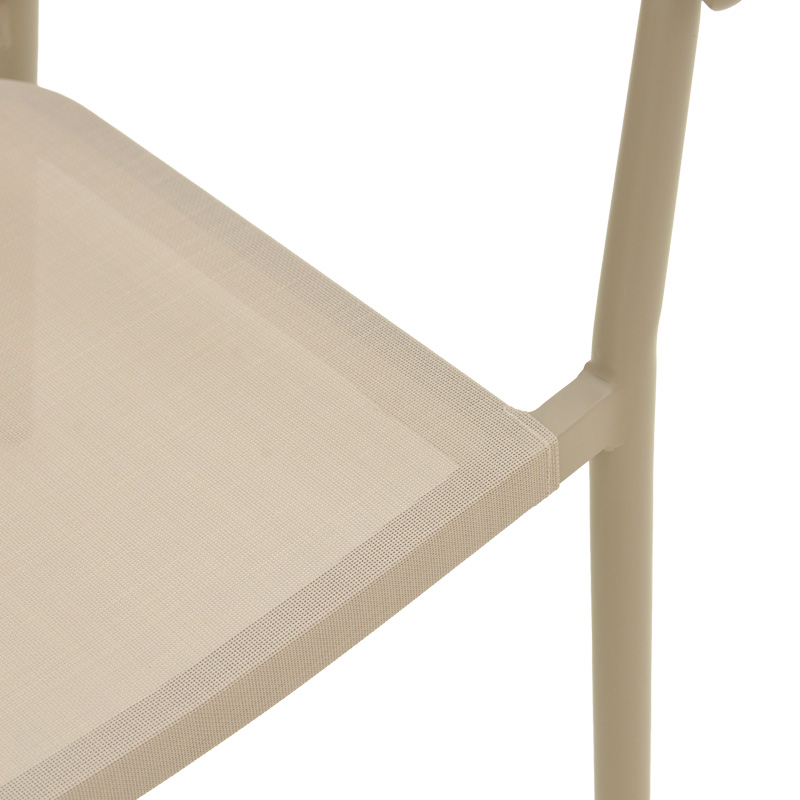 - Έδρα κατασκευασμένη από textilene. Το textilene είναι ένα εξαιρετικά ανθεκτικό υλικό που χρησιμοποιείται ευρέως σε επίπλωση εξωτερικών χώρων και εξαρτήματα. Το υλικό αυτό επιτρέπει τη διέλευση του αέρα, βοηθώντας στη διατήρηση μιας δροσερής αίσθησης κατά τη χρήση.