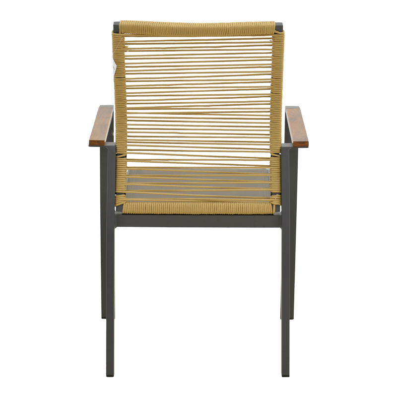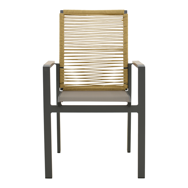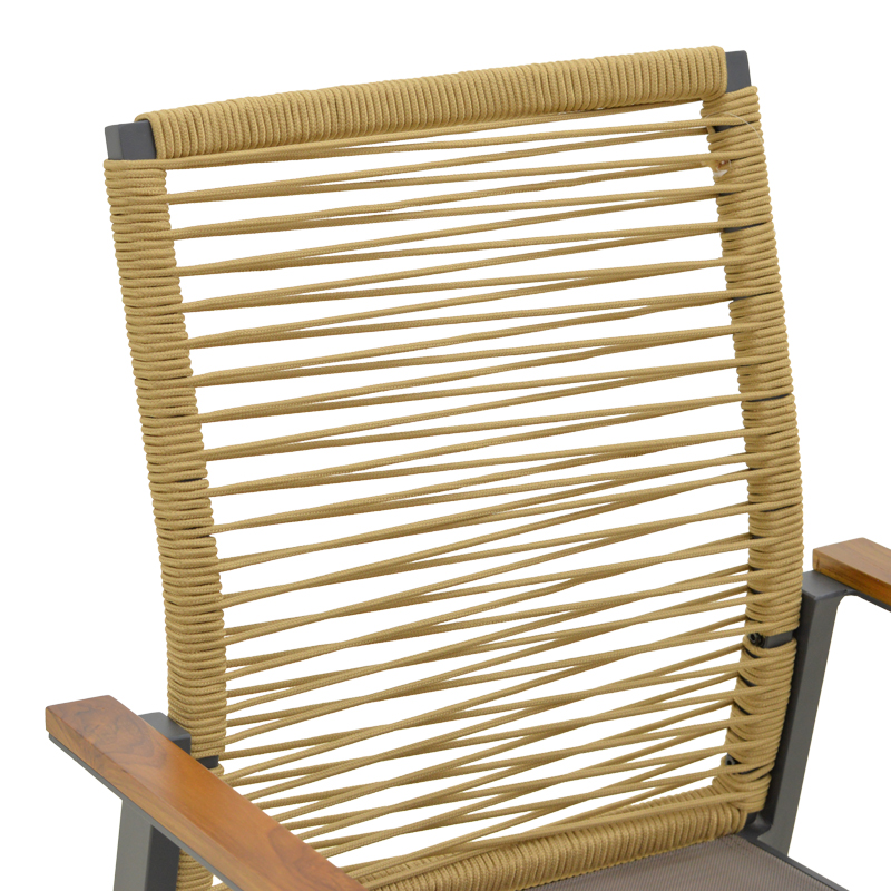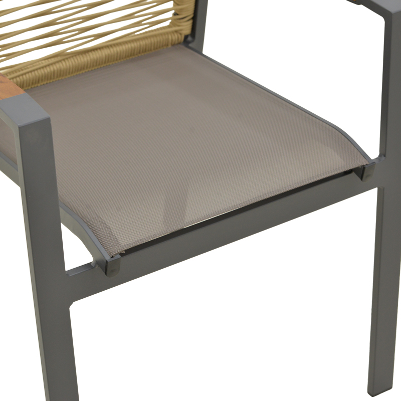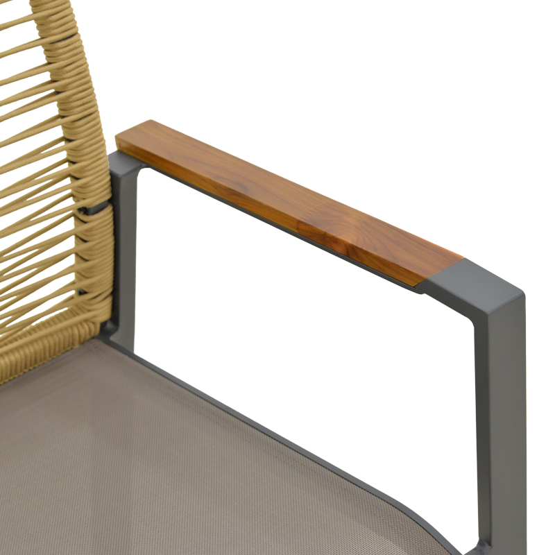 Πολυθρόνα Aegean pakoworld στοιβαζόμενη teak-pe σχοινί σε φυσική – αλουμίνιο κ textline σε ανθρακί απόχρωση 56.5x58x91εκ