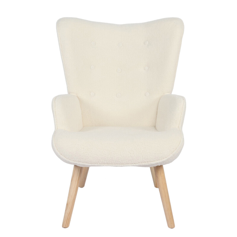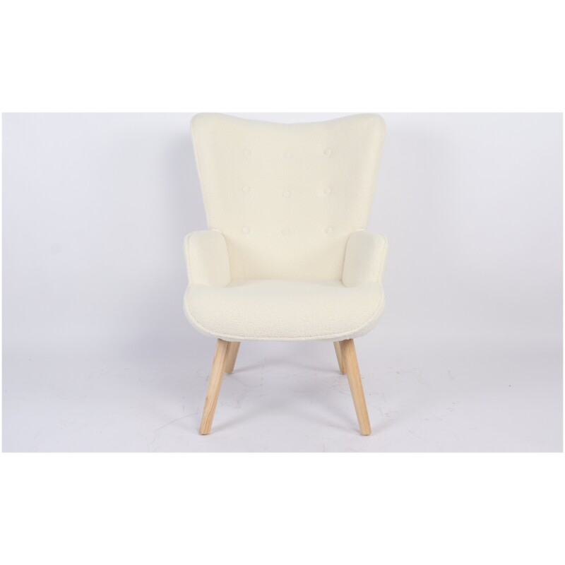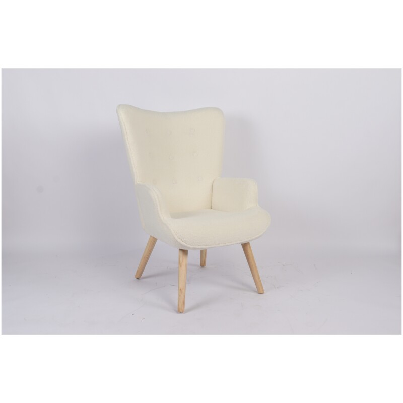 Πολυθρόνα ArteLibre MARION Λευκό Ύφασμα Μπουκλέ/Ξύλο 73x69x96cm