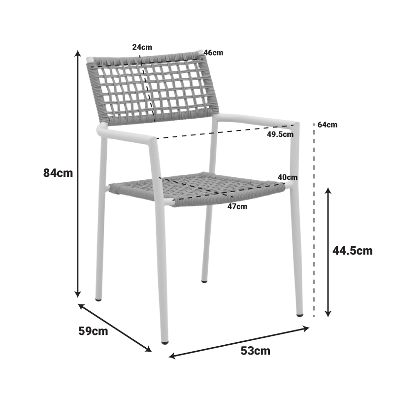 - Μοντέρνα Αισθητική: Η πλέξη από ανθεκτικό σχοινί (Ø5mm) προσδίδει μια σύγχρονη, ανάλαφρη υφή, δημιουργώντας ένα οπτικά εντυπωσιακό αποτέλεσμα που ξεχωρίζει.