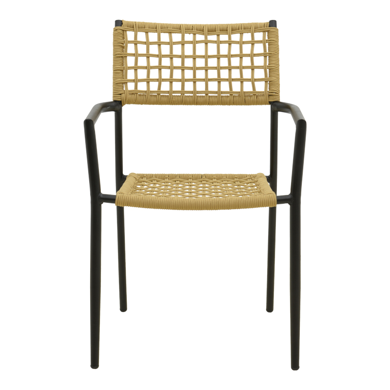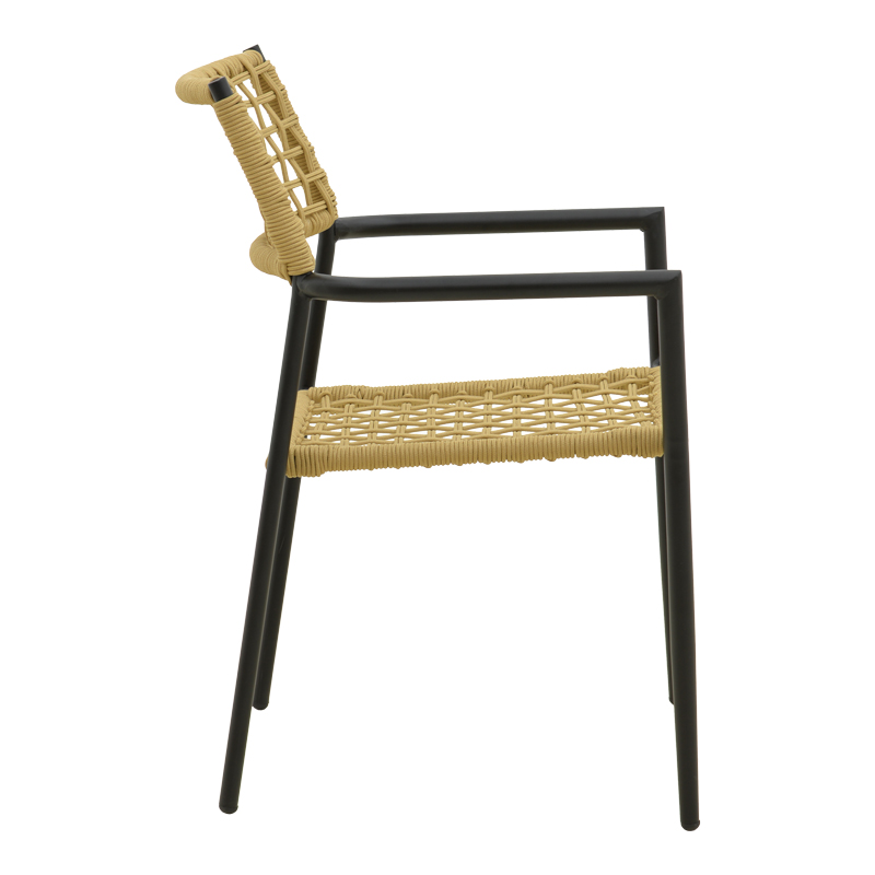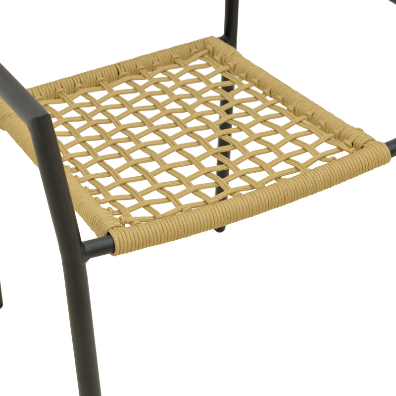 Πολυθρόνα Castal pakoworld στοιβαζόμενη μέταλλο σε μαύρο -pe σχοινί σε φυσική απόχρωση 53x59x84εκ