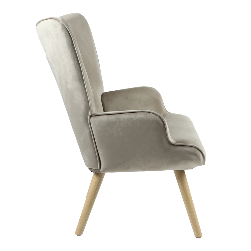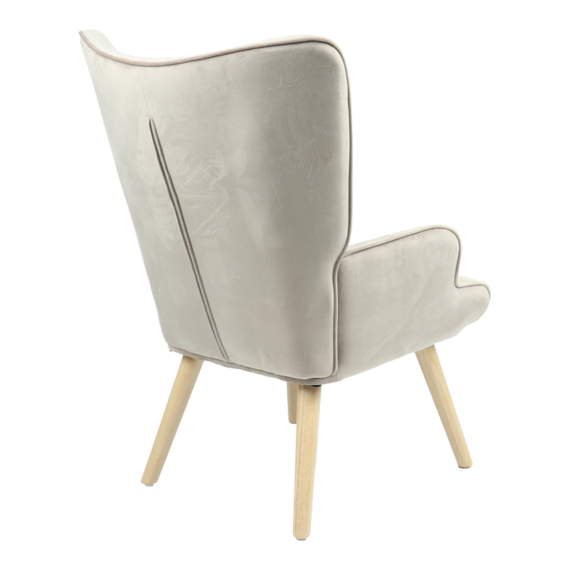 Πολυθρόνα Fluffy pakoworld βελούδο μπεζ-φυσικό πόδι 75x69x96εκ