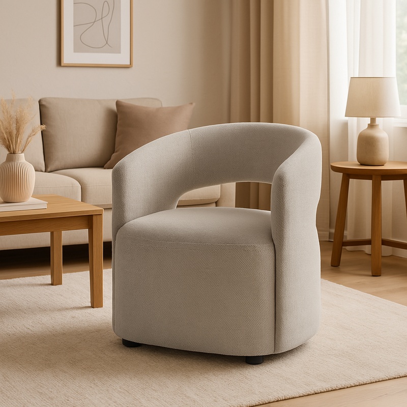 Πολυθρόνα Lemouton pakoworld ύφασμα σε γκρι-μπεζ απόχρωση 69.5x66x80εκ