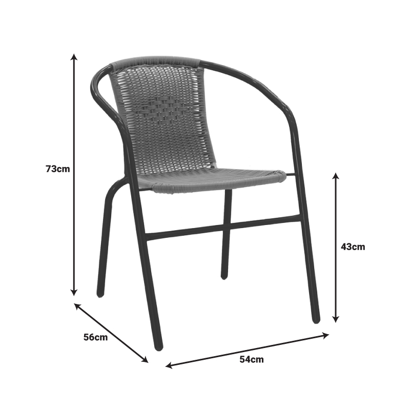 - Σταθερός σκελετός από μέταλλο με αντοχή στην καταπόνηση και στη φθορά. Κυρίως σώμα έδρας-πλάτης από εξαιρετικής ποιότητας PE rattan. Το PE rattan είναι ένα είδος οικολογικού συνθετικού rattan, ανακυκλώσιμο και με μεγαλύτερη ανθεκτικότητα σε σχέση με τα άλλα είδη.